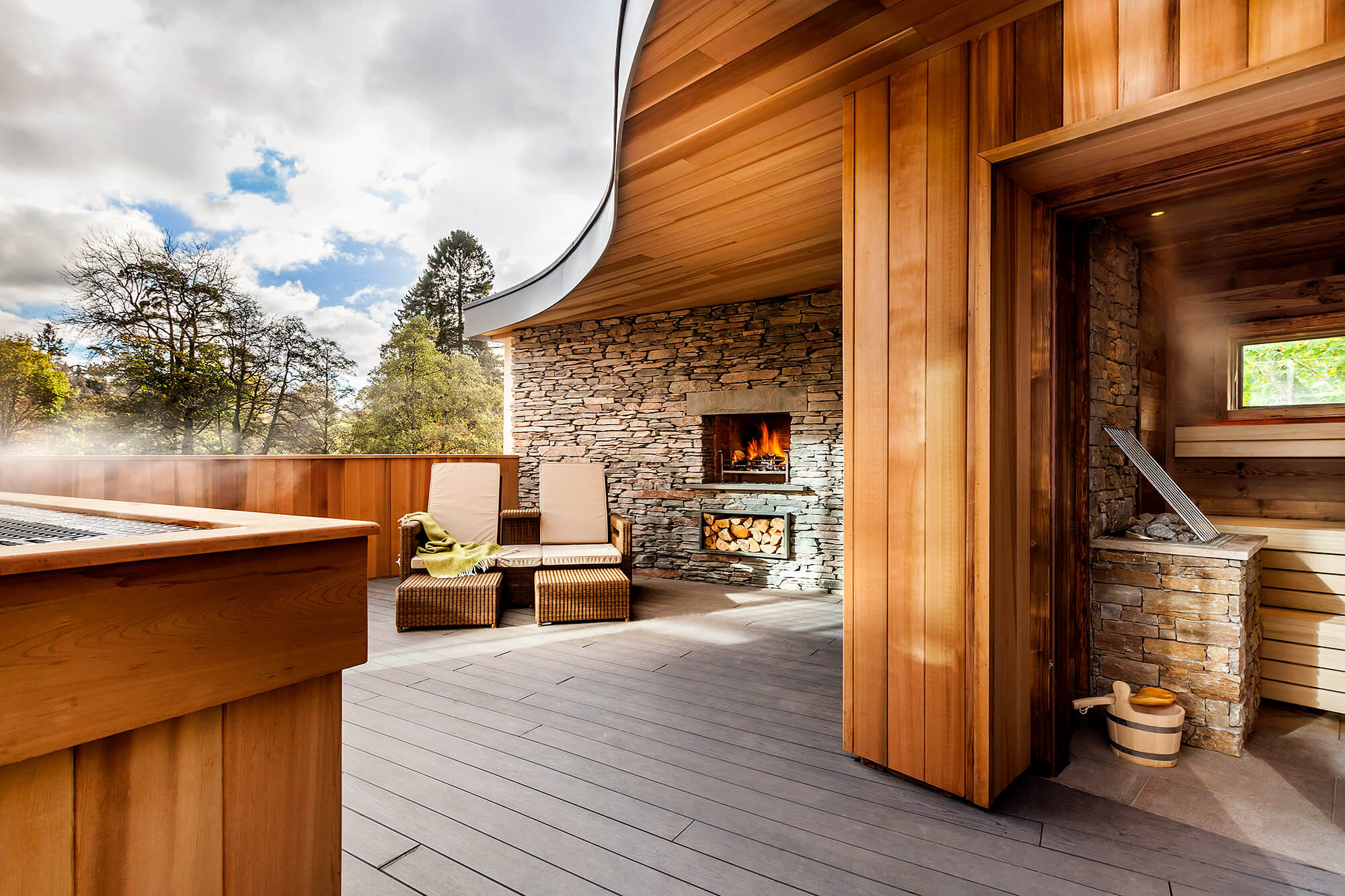 There’s something so simplistically pleasing about a train journey. Coffee, snacks, a good book and the meditative whirr of passing views. Half the fun of visiting Brimstone Hotel is travelling by train and being collected from Windermere station in a black Landrover Defender. The innovative hotel has just 16 suites, all taken care of by a team of hosts. There’s no traditional reception, but they’re always just a phone call away. Rooms are modern but cosy with log fireplaces, private terraces overlooking the woodlands and side-by-side slipper baths just two steps away from a dreamy 2m x 2m bed. Upon arriving at the Brimstone Spa you’ll be handed a map of the 7-step thermal suite and asked to choose from three scented herbal salts before you begin the journey so that you can carry them with you to infuse each step, eventually taking them home to use as bath salts. Back at the main hotel building, Brimstone’s Reading Room is open around the clock with a complimentary spread of hot and cold drinks, wine, beer, pastries, sandwiches, afternoon tea and even cheese and biscuits come evening. Outdoor kit hire from the hotel’s Boot Room will save the day if you forget to pack walking socks or waterproofs. If you haven’t filled up on the snacks from The Reading Room, dinner at The Stove is delicious, with a surprisingly buzzy atmosphere and wonderful wine selection. The menu is full of local, seasonal fare and the sticky toffee bread pudding is a must!