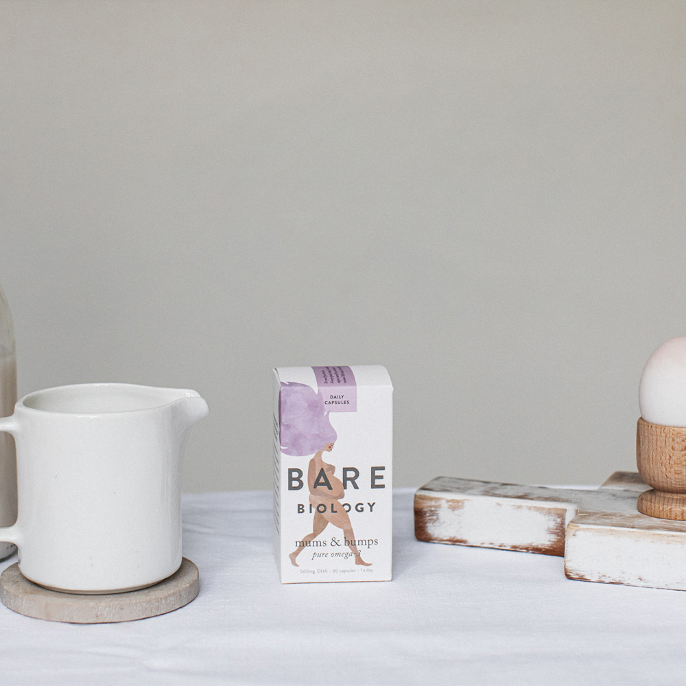Bare Biology offers pure and safe omega-3 fish oil for pregnancy. Just one small capsule a day has 560mg DHA, critical for baby’s development and mum’s health. From trying to conceive right through to breastfeeding, omega-3 fatty acids are essential for the proper growth and development of babies’ eyes and brains. All of their capsules are made from sustainably sourced fish gelatin.